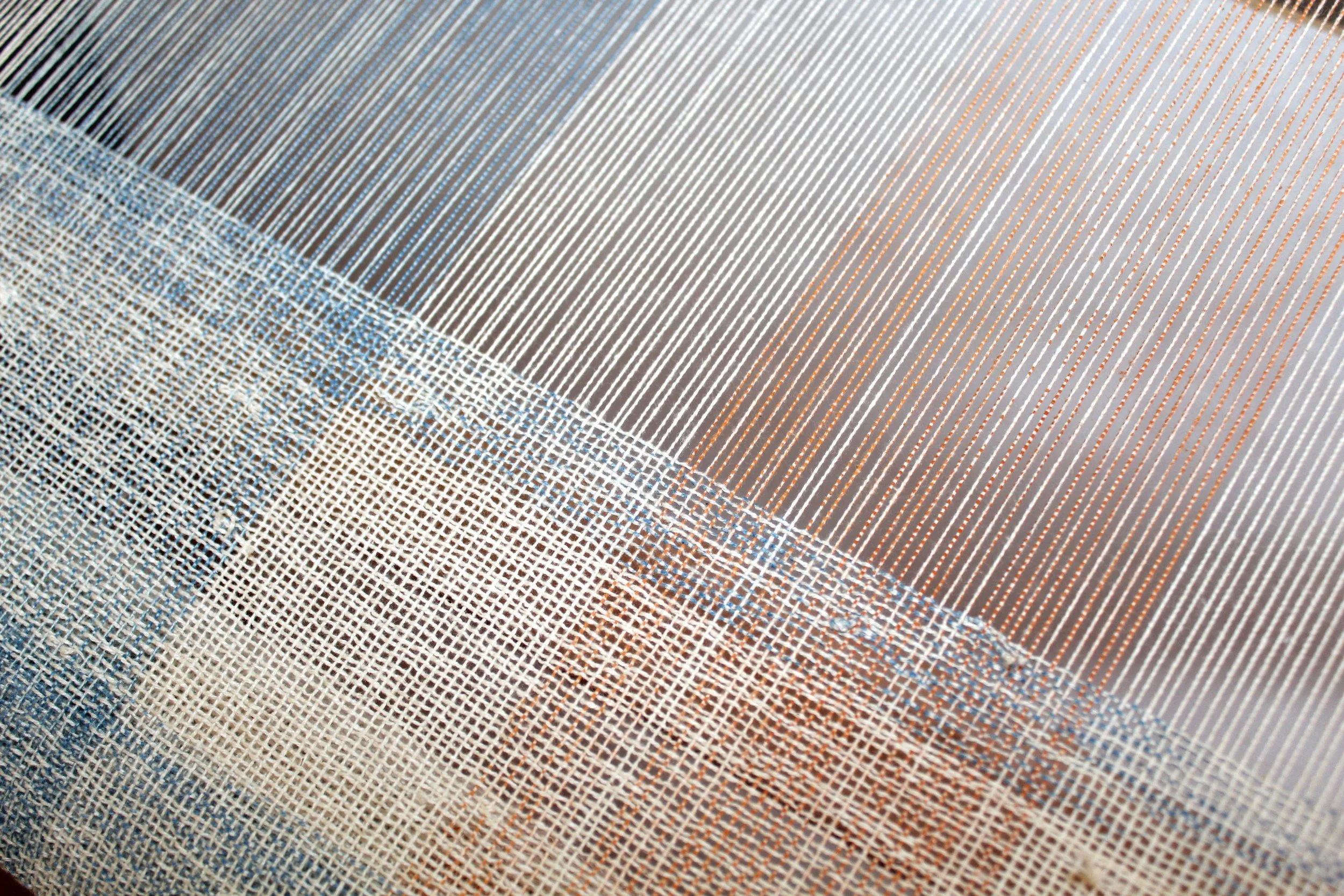 As a later-in-life full-time art student, Lucia slowly started unravelling (un/weave) her medium-sized, tautly stretched, well-painted life canvas. Pulling the threads out one by one. Solid blocks of colour became fragile threads. Some steeped in dark hues, some pure and white, most of them variegated, ombre, and nuanced.